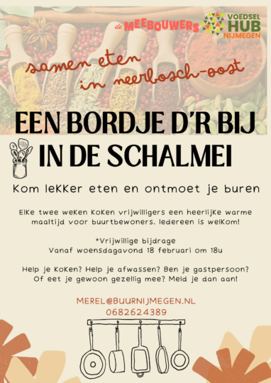 Elke twee weken koken vrijwilligers een heerlijke warme maaltijd voor buurtbewoners. Iedereen is welkom!