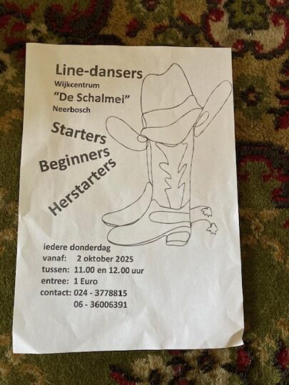 Vanaf 2 oktober iedere donderdag van 11:00 tot 12:00 linedance in De Schalmei. Entree €1,-