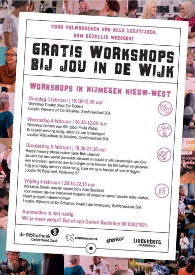Op vrijdagavond 6 februari is in Wijkcentrum De Schalmei een gratis workshop Samen Muziek Maken (door Aldo Spadaro).