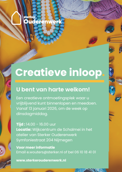 In januari startte Sterker Ouderenwerk met een creatieve inloop voor 65+ers. Om de week kun je op dinsdag van 14:00 tot 16:00 binnenlopen bij wijkcentrum De Schalmei om samen mooie dingen te maken. De data vind je ook in onze agenda.