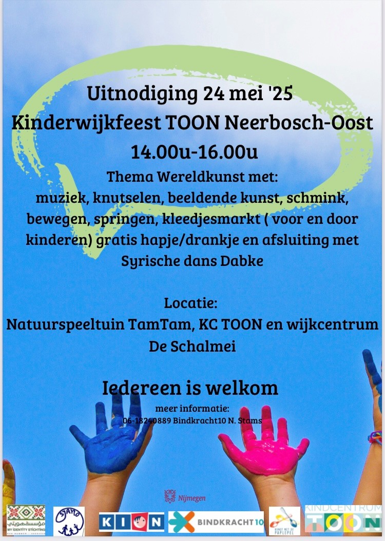 Herinnering: Aanstaande zaterdag 24 mei ben je van harte welkom op het Kinderwijkfeest TOON van 14.00 tot 16.00 uur!
