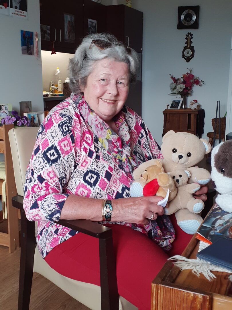 Mary: “Ik woont al ruim 1,5 jaar in de Honinghoeve waar ik het heel erg naar mijn zin heb. Ik heb een herseninfarct gehad en daar heb ik een probleem aan overgehouden. Wel weten wat ik wil zeggen maar dat niet altijd kan. Maar met geduld komen de woorden dan vanzelf. Voor mijn bezoek is dat nog wel eens lastig om rustig af te wachten. Maar ik heb een ijzersterk geheugen dus dat is het niet.