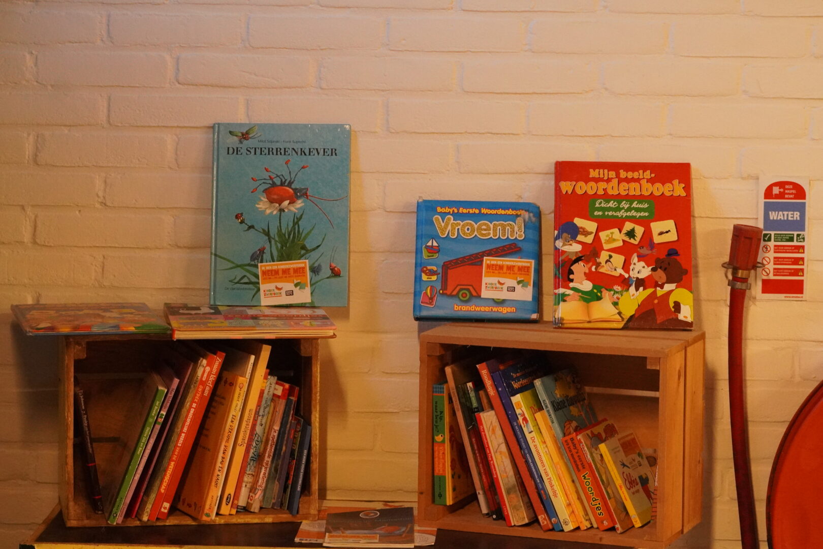 Binnen in de woonkamer kun je de kinderboeken vinden. Die worden zwerfboeken genoemd en mogen ook gratis meegenomen worden. Waarom zwerfboeken? De boekjes gaan van de ene eigenaar naar de volgende. Dus als jij het boekje uit hebt geef je dat weer door aan iemand anders, vandaar.