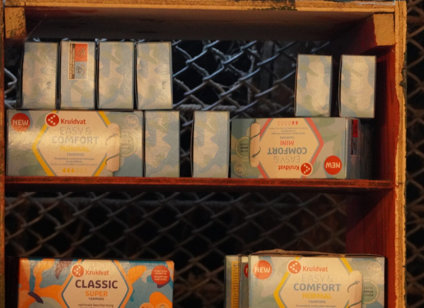 Speciaal voor mensen die het niet zo breed hebben, is er damesverband. Ook dát mag (per persoon 1 pakje) gratis meegenomen worden.
