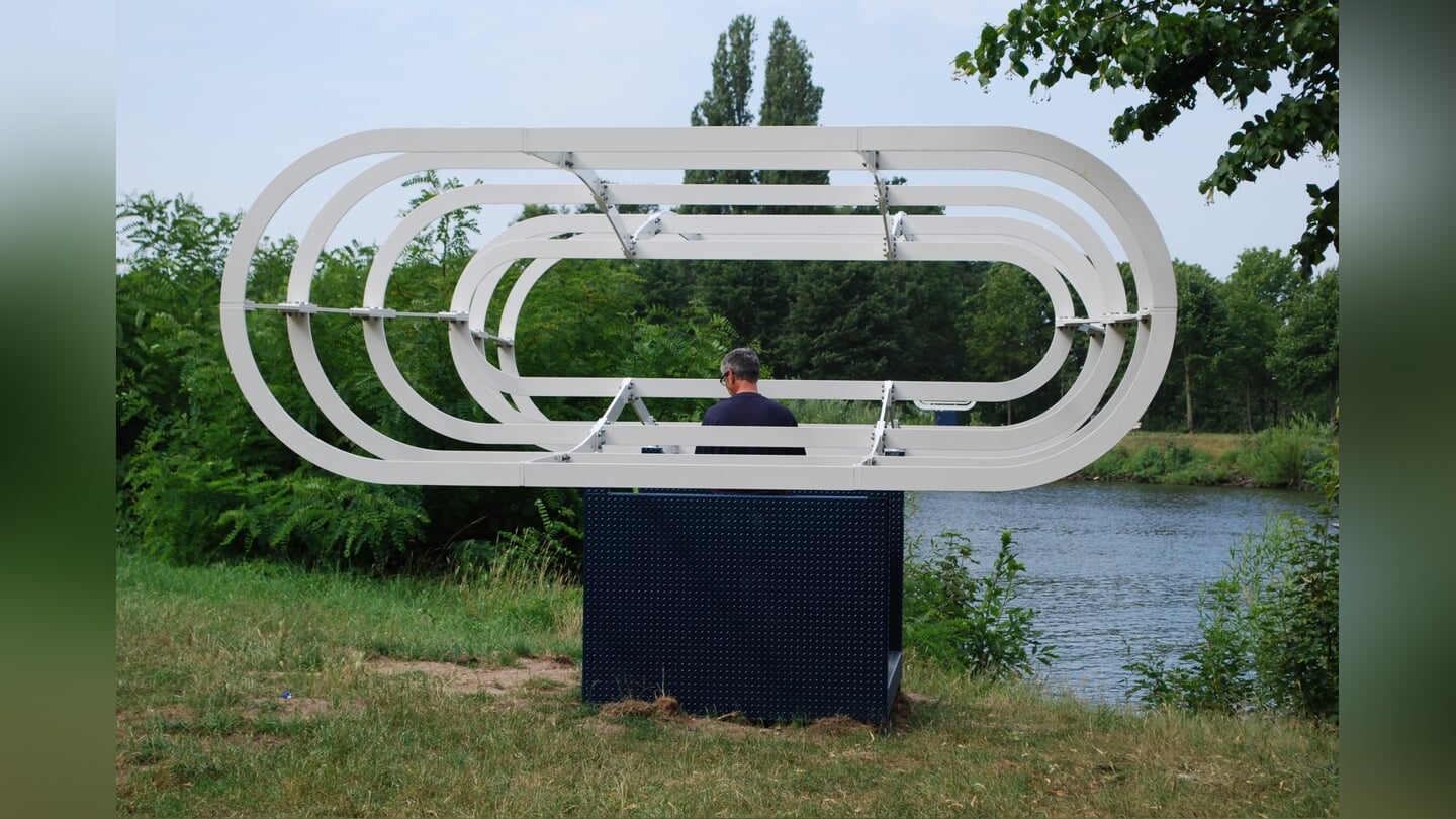 Om de lancering van de podcast te vieren, organiseert Besiendershuis de performance van kunstenaar Rob Sweere langs het kanaal. In 2011 maakte Sweere het kunstwerk ‘On the road’, dat aan weerszijden van het kanaal staat ter hoogte van Neerbosch-Oost en Lindenholt. Het symboliseert de Dorpsweg van Neerbosch, die in tweeën werd gesplitst toen in 1920 het kanaal werd gegraven. Zittend in het kunstwerk kijk je over het kanaal naar het andere deel van het kunstwerk, waar ook mensen zitten. Zo bestaat de verbinding tussen beide zijden nog steeds.