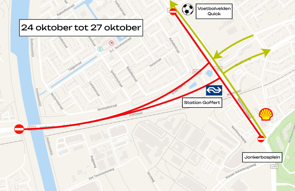 In de komende twee weekenden wordt er gewerkt op het Nelson Mandelaplein, naast Station Nijmegen Goffert. Het eerste weekend is van vrijdagavond 24 oktober tot maandagochtend 27 oktober. Het tweede weekend is van vrijdagavond 31 oktober tot maandagochtend 3 november.